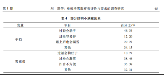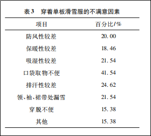 接下來作者又對消費者穿著單板滑雪服不滿意因素進行調(diào)查,結(jié)果如下。