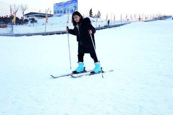 6.接下來該學(xué)習(xí)平行轉(zhuǎn)彎滑行了。兩只雪板平行,與臀同寬,通過重心高低左右的交換實現(xiàn)轉(zhuǎn)彎。