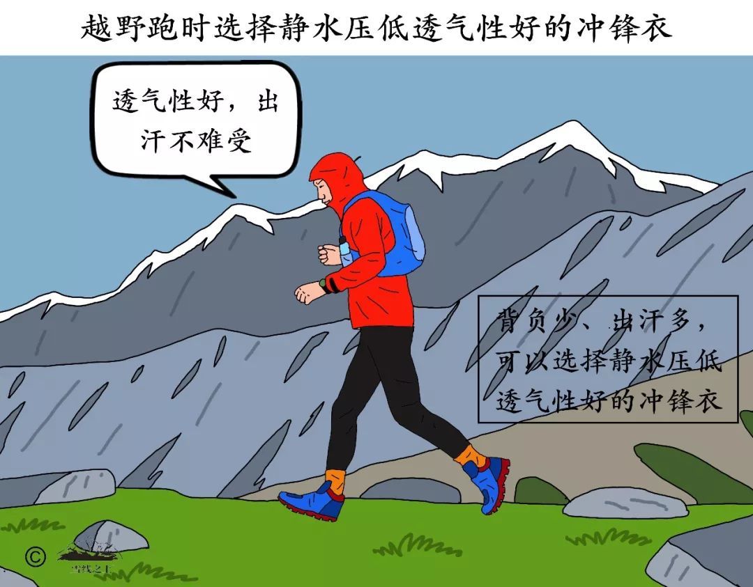 既然沖鋒衣的透氣性與防水性成反比,在一些排汗要求高、雨雪威脅小的戶外活動(dòng),比如越野跑,你就需要傾向于高透氣性的沖鋒衣。