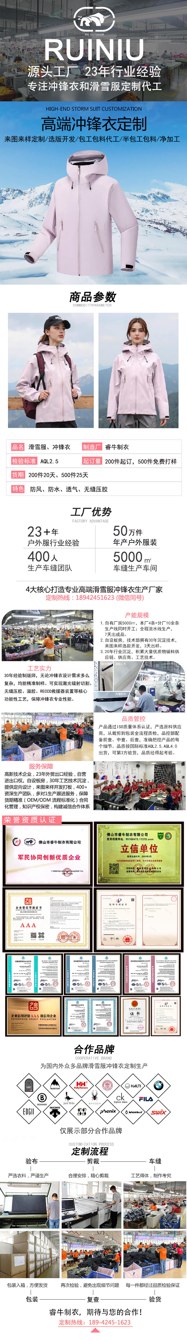 沖鋒衣加工廠包工包料定制生產單層硬殼沖鋒衣