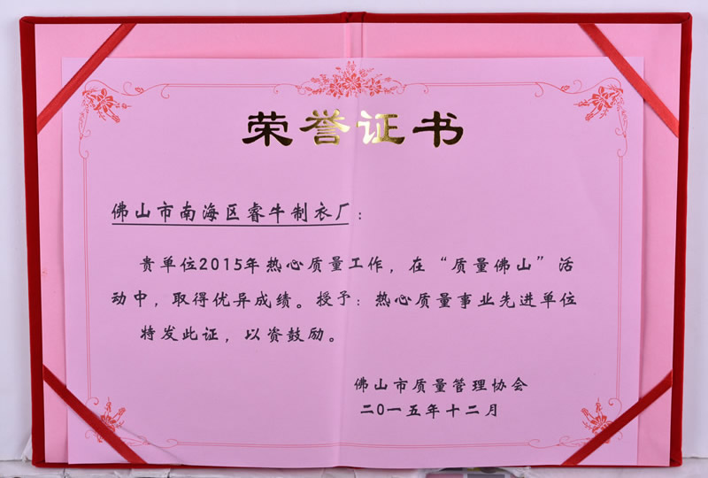 熱心質量事業(yè)先進單位 -