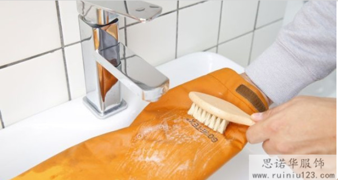 2、先用軟毛刷,在沖鋒衣弄的較臟的部位首先進(jìn)行刷洗,一定注意不要太過(guò)于力過(guò)猛;